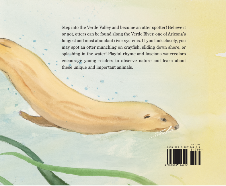 Step into the Verde Valley and become an otter spotter! Believe it or not, otters can be found along the Verde River, one of Arizona’s longest and most abundant river systems. If you look closely, you may spot an otter munching on crayfish, sliding down shore, or splashing in the water. Playful rhyme and luscious watercolors encourage young readers to observe nature and learn about these unique and important animals.